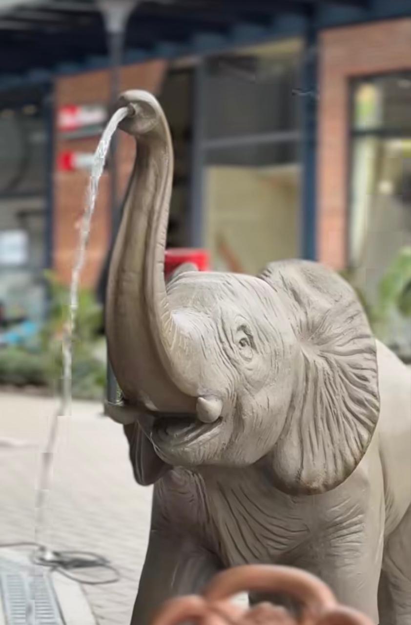 Fuente Elefante realizado en fibra de vidrio, en tamaño real a elefante bebe.